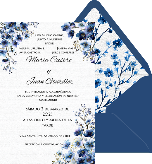 Reserva la fecha, flores azules