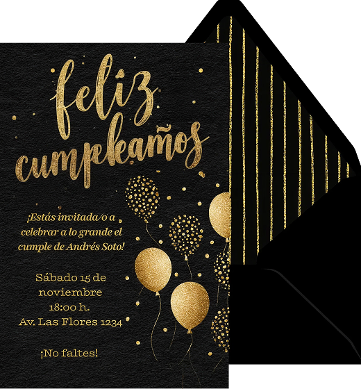Globos dorados - Plantilla de invitación