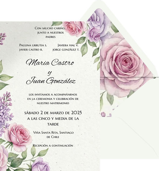 Lilas y rosas - Plantilla de invitación
