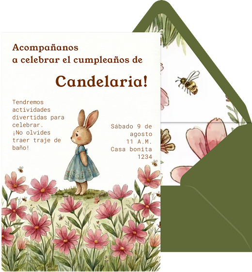 Conejita campo de flores - Plantilla de invitación